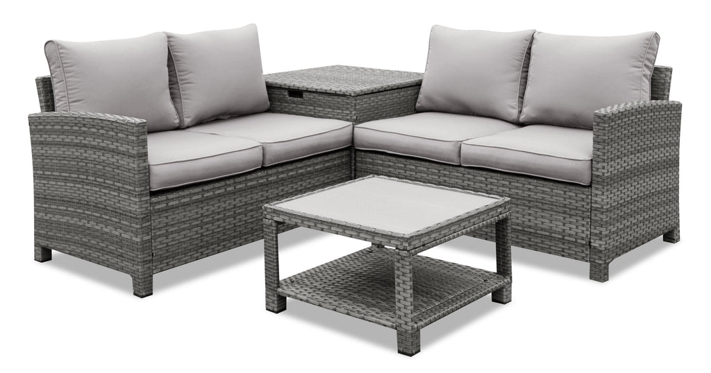 Dominica 4-Piece Outdoor Patio Set with 2 Loveseats, Storage End Table & Glass Top Coffee Table - Hand-Woven Resin Wicker, UV & Weather Resistant - Grey | Ensemble de conversation Dominica 4 pièces pour la terrasse | DOMI4SET