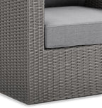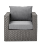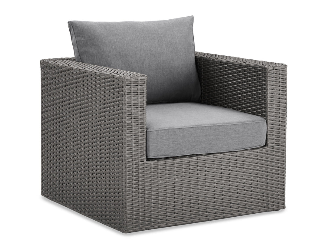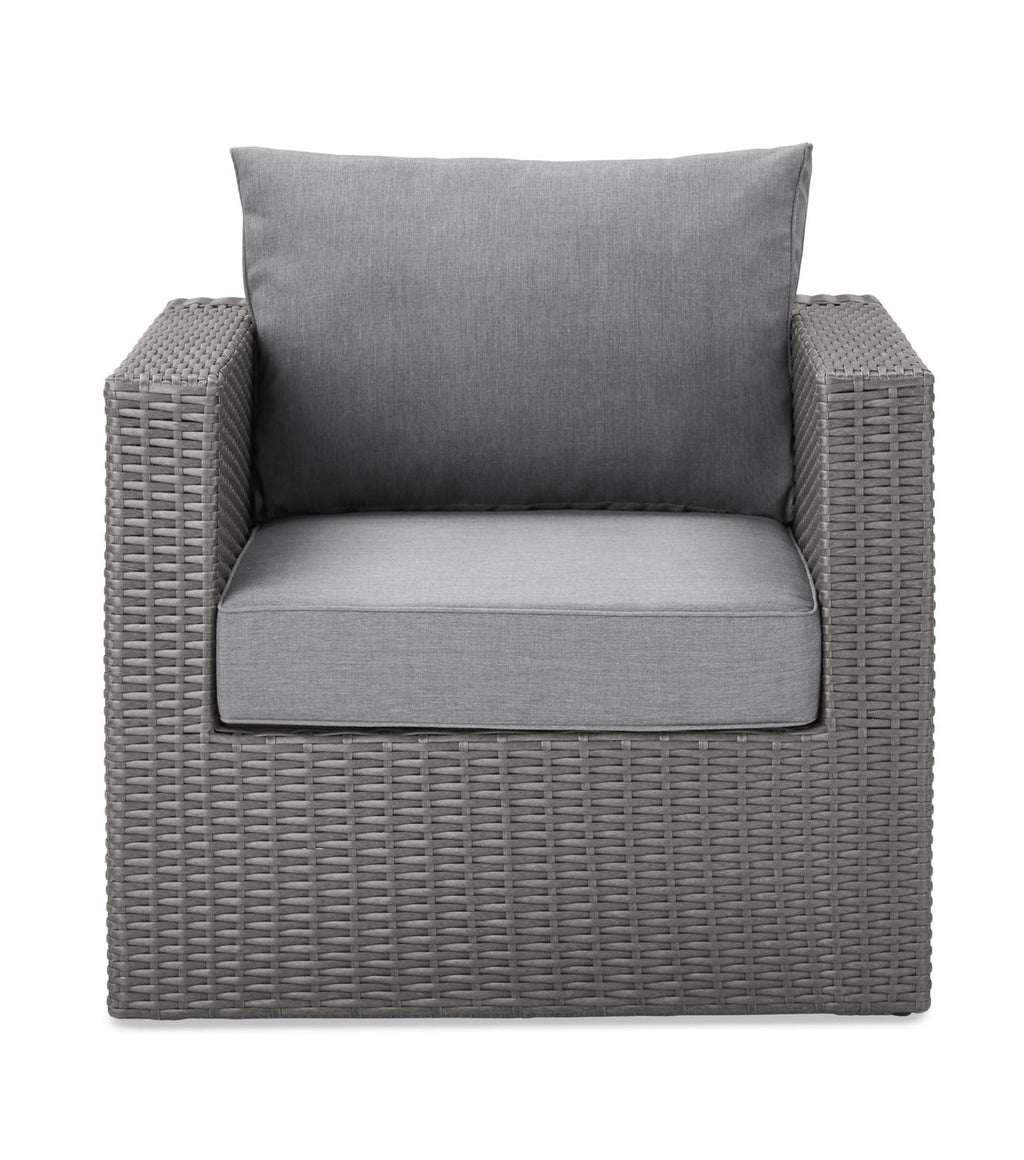 Morris Outdoor Patio Chair - Hand-Woven Resin Wicker, Olefin Fabric, UV & Weather Resistant - Grey|Fauteuil Morris pour la terrasse à l’extérieur, osier en résine tressé à la main, tissu en oléfine, résistant aux rayons UV et aux intempéries - gris